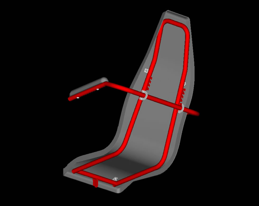 アームレストパイプ に アームレスト を M5ネジ で取付け後、ブラケット で押さえ、M5ボルト・Nナット で シートパイプ1 に取付ける。(組込み済)