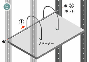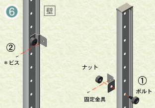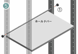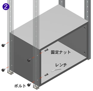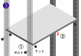 【連結の場合】 棚を平行に取付ける時 ・ ジョイントボルトとナット2個で取り付けます。