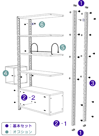■地震でも倒れにくいラックの提案 高さを天井まで設定し、フレームの両端(または下端部のみ)にアジャスターを取付けて、天井と床の間で突っ張ることにより、非常に倒れにくいラックにする事が出来ます。