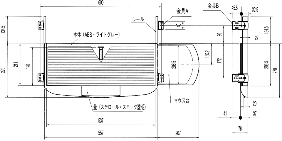 <拡大> *側面図にはマウストレーが含まれていません。