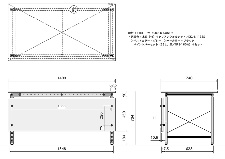 W1400×D740×H705