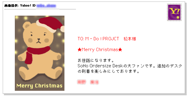 クリスマスカード(デスクへのファンレター)まで頂き有り難うございました。 |